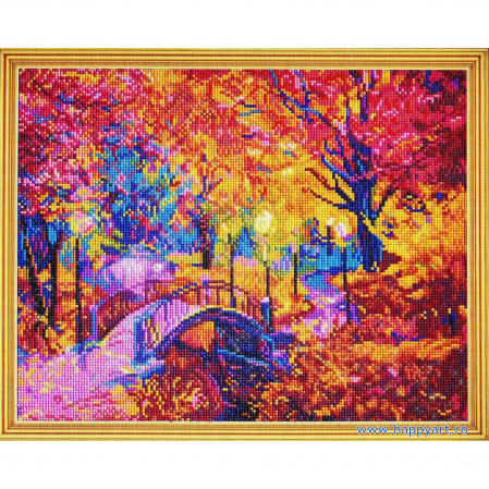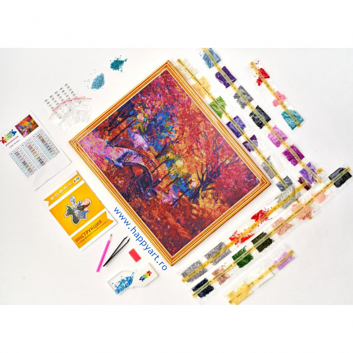 Set Goblen cu diamante, cu sasiu, Culorile Toamnei, 40x50 cm, 27 culori, Grad de complexitate 4 / 5