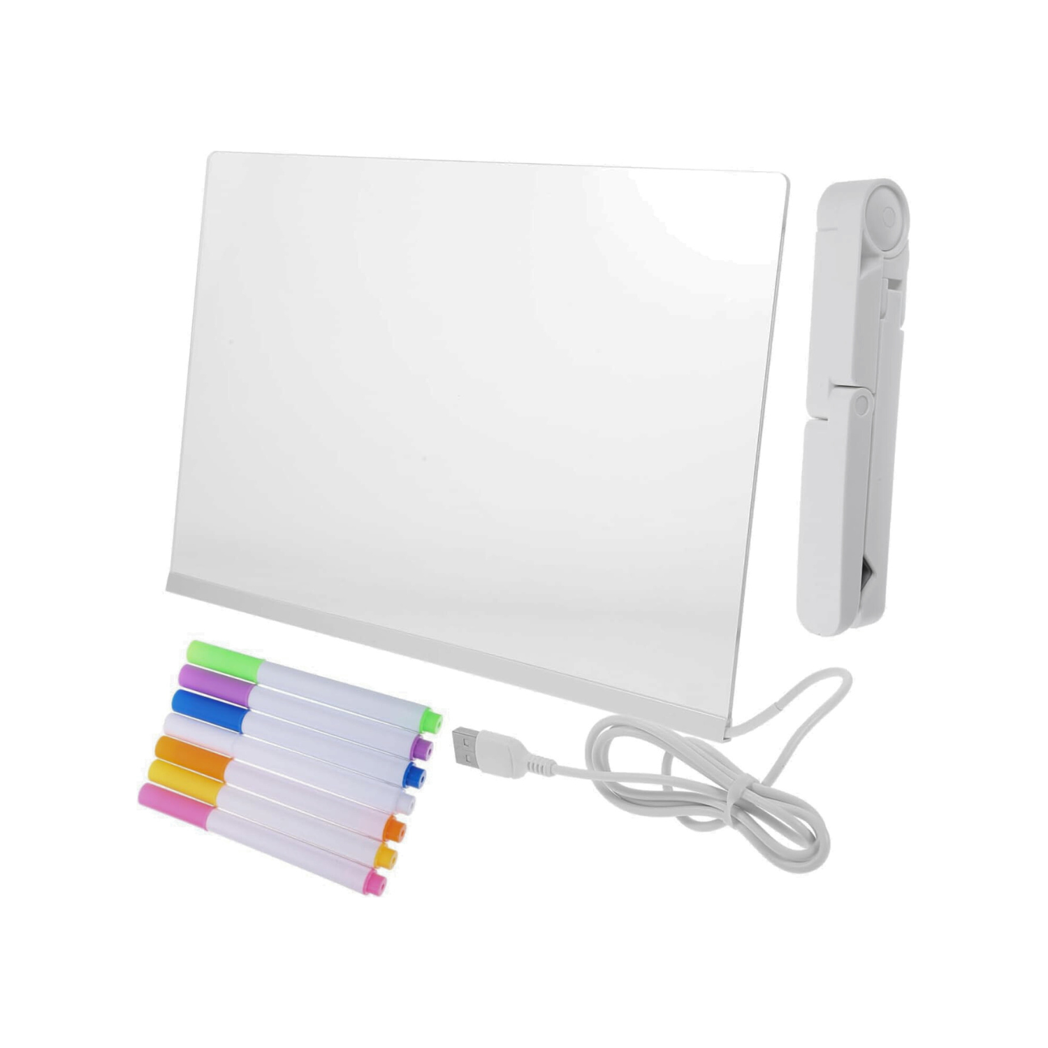 Alege aceasta tablita luminata din acril pentru a-ti organiza si decora spatiul de lucru cu stil! Noteaza, sterge si personalizeaza mesajele tale cu cele 7 carioci incluse. Perfecta pentru birou, acasa sau in orice spatiu creativ!